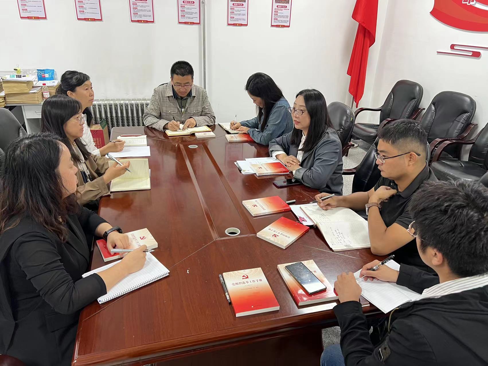 党支部书记工作例会制度(试行)》,研讨了例会包含的主要内容和具体要求。并为各支部书记发放了《党组织选举工作手册》,嘱咐大家认真学习。