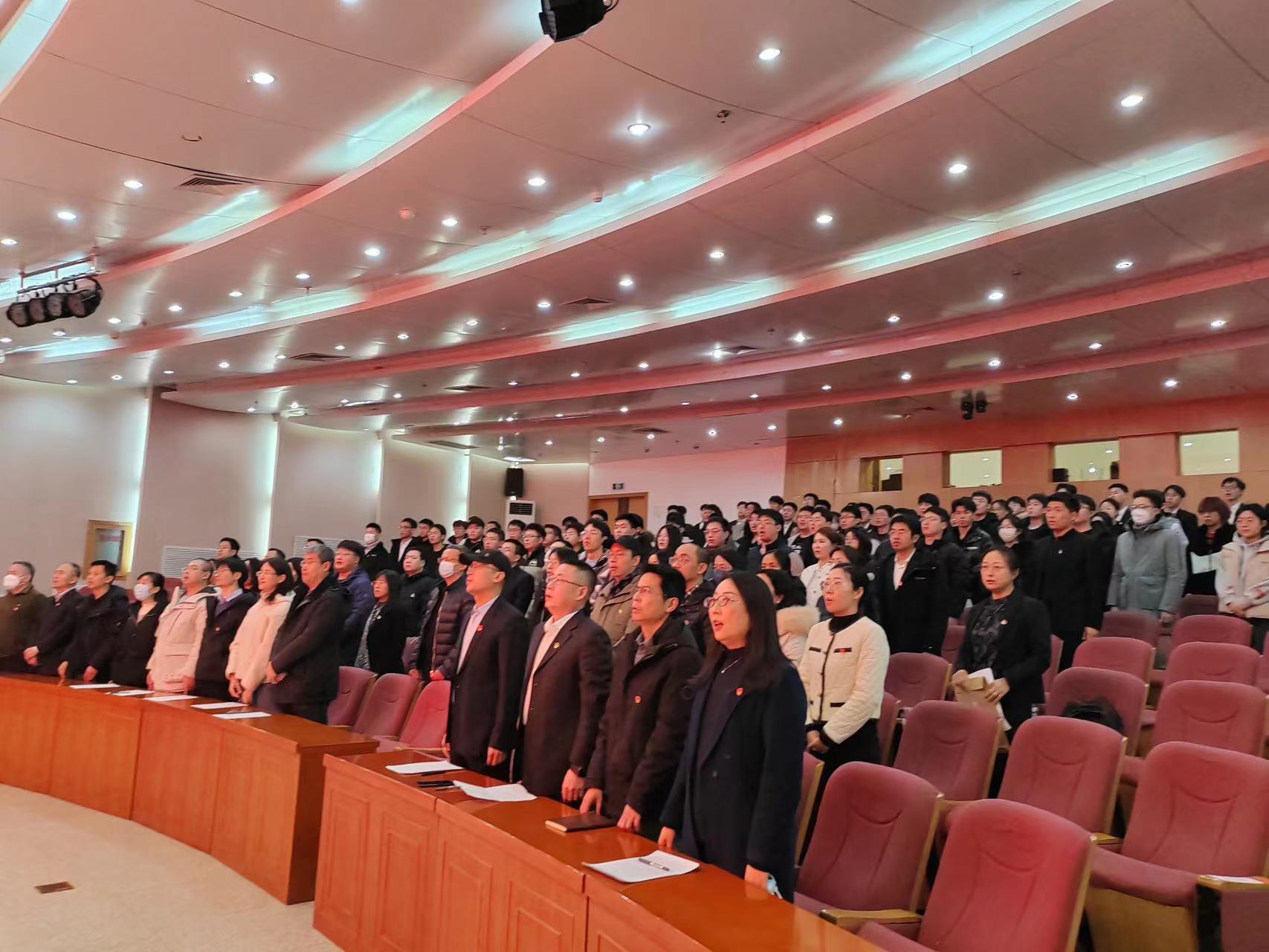 党委在沙河口区图书馆报告厅召开党员大会暨换届选举大会。党委组织部麻会存同志列席会议,学院129名师生党员参加会议。会议由闻竹同志主持。
