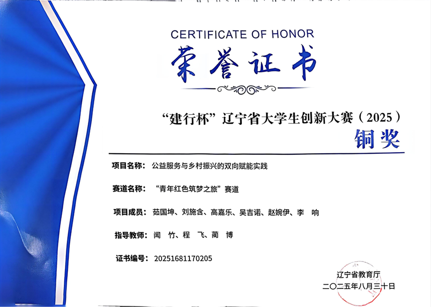 辽宁省大学生创新大赛中,支教团以“公益服务与乡村振兴的双向赋能实践”项目脱颖而出。获得“青年红色筑梦之旅”赛道铜奖。这一成果不仅是对九年支教实践的总结,更是对教育帮扶模式的升级探索。